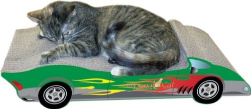 Vroom! The convertible features sleek curves and contours designed to provide cats with a surface that is both scratch-able and snooze-able. Comprised of 30% minimum recycled materials and 100% recyclable. Includes a bag of Certified Organic Catnip. Made in USA. Available in the pattern of your choice or in an assorted case. Depth: 9". Width: 23". Height: 4"